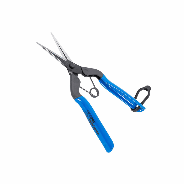 The Chikamasa T-552 Trimming Scissors are top of range trimming scissors. Gro Supplies recommends these scissors due to them having a nice sized open handles with lightly sprung jaws. The benefit of this is that they are perfect for comfort and ease ability which reduces hand strain. The Chikamasa T-552 Trimming Scissors have a very sharp blade with fine tips making trimming accurate and easy. These trimming scissors are also constructed using metal with plastic coated handles making them long lasting for years to come providing they are maintained. A feature that these scissors have over competitors is that it has a jaw lock band for safety so the blades are not in contact with any thing and it makes it easy for storage. This is one of the most essential items for growers.