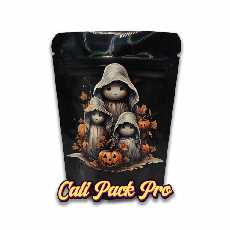 Ghost Runtz 3.5g Mylar Bag available in 1g, 3.5g, 7g, 14g, 28g, 112g, 224g, 448g, Food Grade PET + Aluminum, Glossy, Heat Seal + Zip Lock, Dry Herbs, Coffee, Edibles, Food Items.