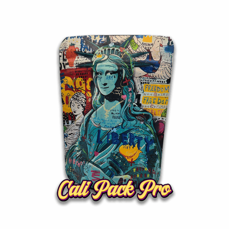 Liberty 3.5g Mylar Bag available in 1g, 3.5g, 7g, 14g, 28g, 112g, 224g, 448g, Food Grade PET + Aluminum, Glossy, Heat Seal + Zip Lock, Dry Herbs, Coffee, Edibles, Food Items.
