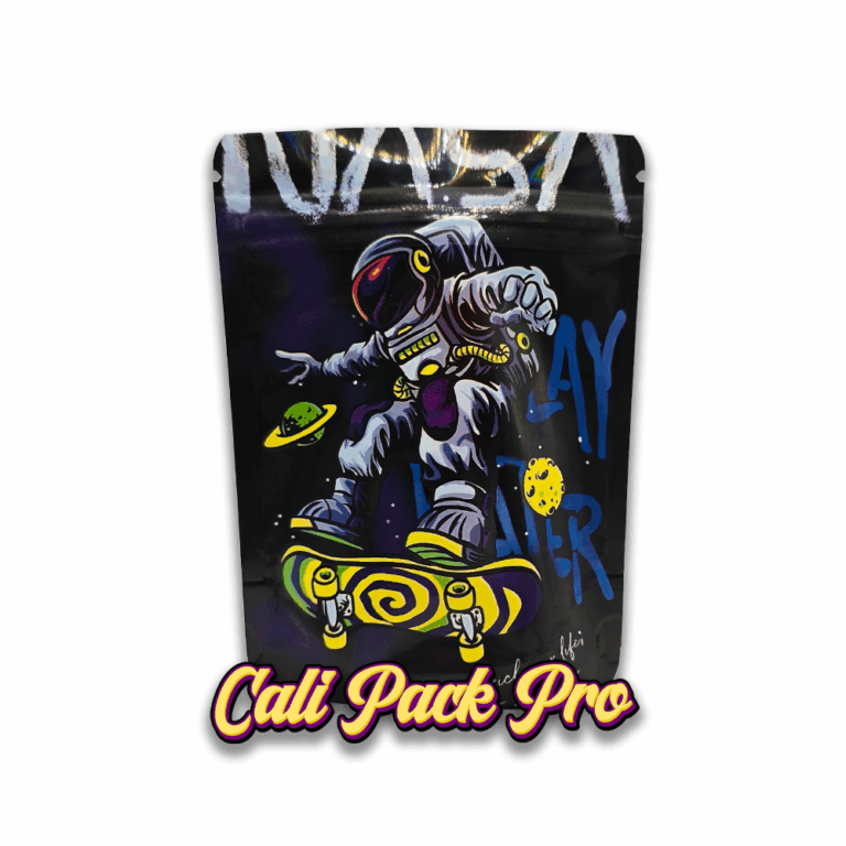 Nasa Skate 3.5g Mylar Bag available in 1g, 3.5g, 7g, 14g, 28g, 112g, 224g, 448g, Food Grade PET + Aluminum, Glossy, Heat Seal + Zip Lock, Dry Herbs, Coffee, Edibles, Food Items.