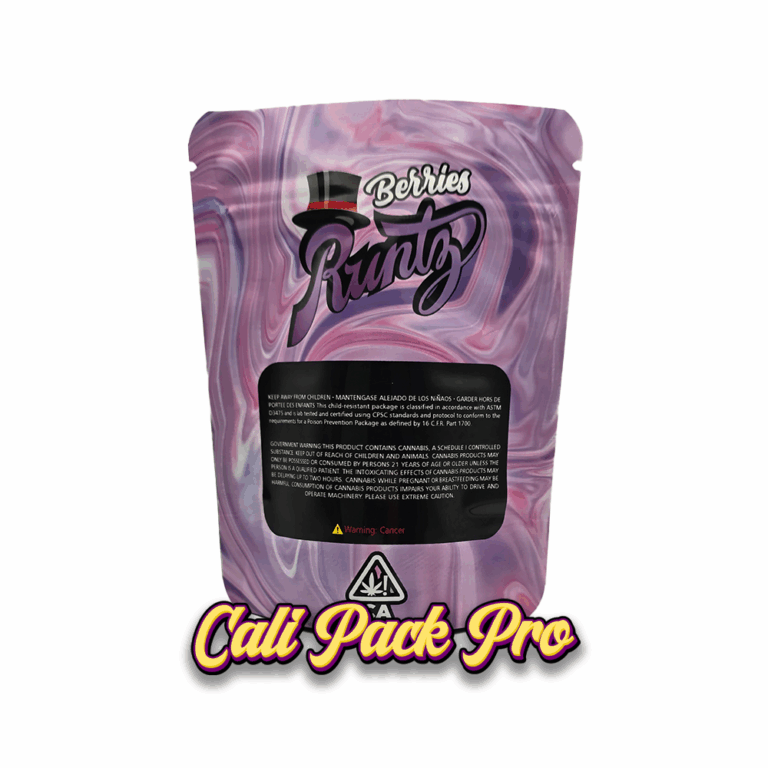 Berries 3.5g Mylar Bag available in 1g, 3.5g, 7g, 14g, 28g, 112g, 224g, 448g, Food Grade PET + Aluminum, Glossy, Heat Seal + Zip Lock, Dry Herbs, Coffee, Edibles, Food Items.