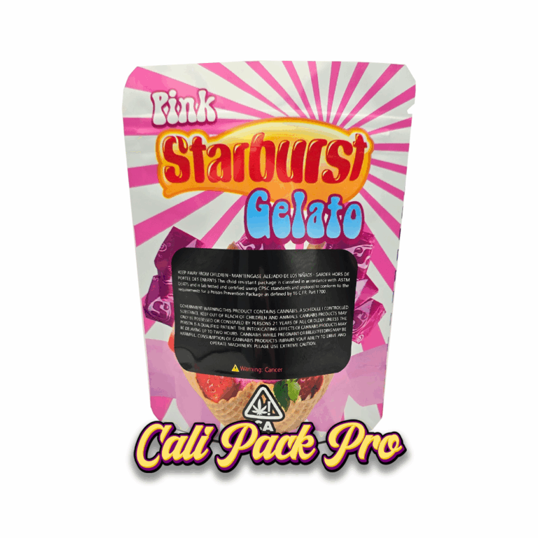 Starburst Gelato 3.5g Mylar Bag available in 1g, 3.5g, 7g, 14g, 28g, 112g, 224g, 448g, Food Grade PET + Aluminum, Glossy, Heat Seal + Zip Lock, Dry Herbs, Coffee, Edibles, Food Items.