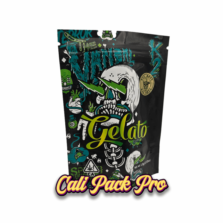 The Vandal 3.5g Mylar Bag available in 1g, 3.5g, 7g, 14g, 28g, 112g, 224g, 448g, Food Grade PET + Aluminum, Glossy, Heat Seal + Zip Lock, Dry Herbs, Coffee, Edibles, Food Items.